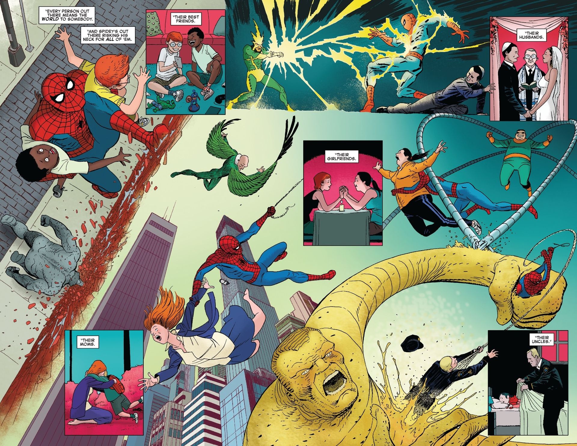A Double-Page Spread from Amazing Spider-Man #801 by Marcos Martin. Copyright Marvel Comics.