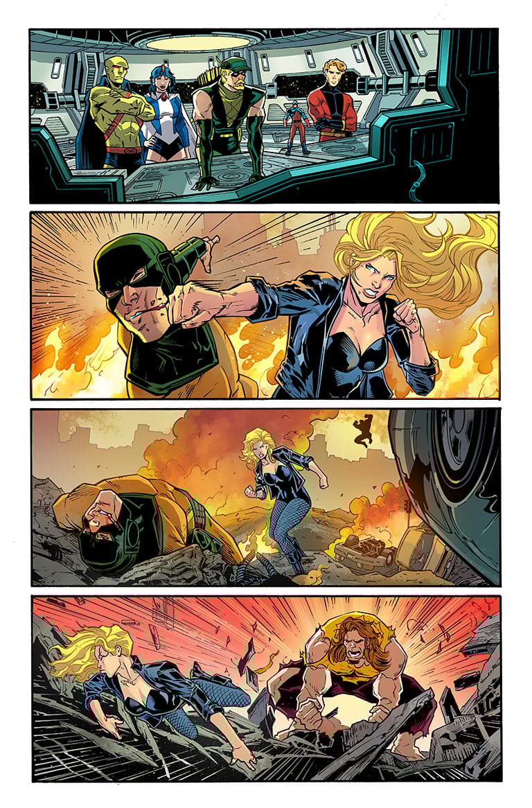 DC’s Supergirl Next Door #1. Green Arrow/Black Canary Story Page 1 Pencils by Dylan Dietrich, Inks by Wade Von Grawbadger, and Colors by Ivan Plascencia. Copyright DC Comics.