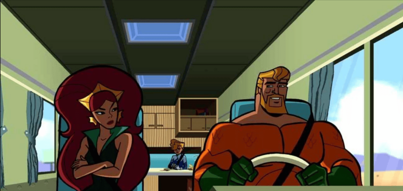 An Aquaman who is boisterous, loud, loves crime-fighting, loves spinning his own fish tales, and who to the delight of fans everywhere yells the word “Outrageous” better than any other character who has ever been on television or film. This episode finds Aquaman on a cross-country road trip with his wife Mera and his son Aqua-Baby, who, in a brilliant move by the writers, is not only alive but is wearing the ocean-blue Aquaman suit from the eighties and who is a little emo boy. Mera makes Aquaman promise to take a break from crime fighting on this vacation and focus on their family, but he can’t do it. Everywhere they stop on this road trip, he ends up running off and secretly teaming up with a nearby superhero. It’s a premise that only works because this show has earned it and has led to this point over almost thirty episodes. It feels like a weird Silver Age comic, it feels like a strange seventies episode of a sitcom, and it is the pinnacle of what was great about Batman: The Brave & The Bold.